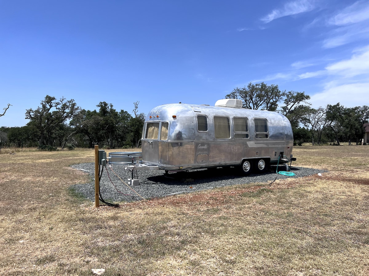 Burn ban in effect as of 2/2/2026. No fires allowed. Experience Fredericksburg and the surrounding wine country while staying in this iconic American Classic. The 2021, 27ft Flying Cloud sits on 10.5 acres, 8.9 miles from downtown Fredericksburg and 8.5 miles to Enchanted Rock. With the main house and one tiny home on the land you can enjoy your time here with parallel peace and privacy while enjoying nature and not sacrificing on luxury.