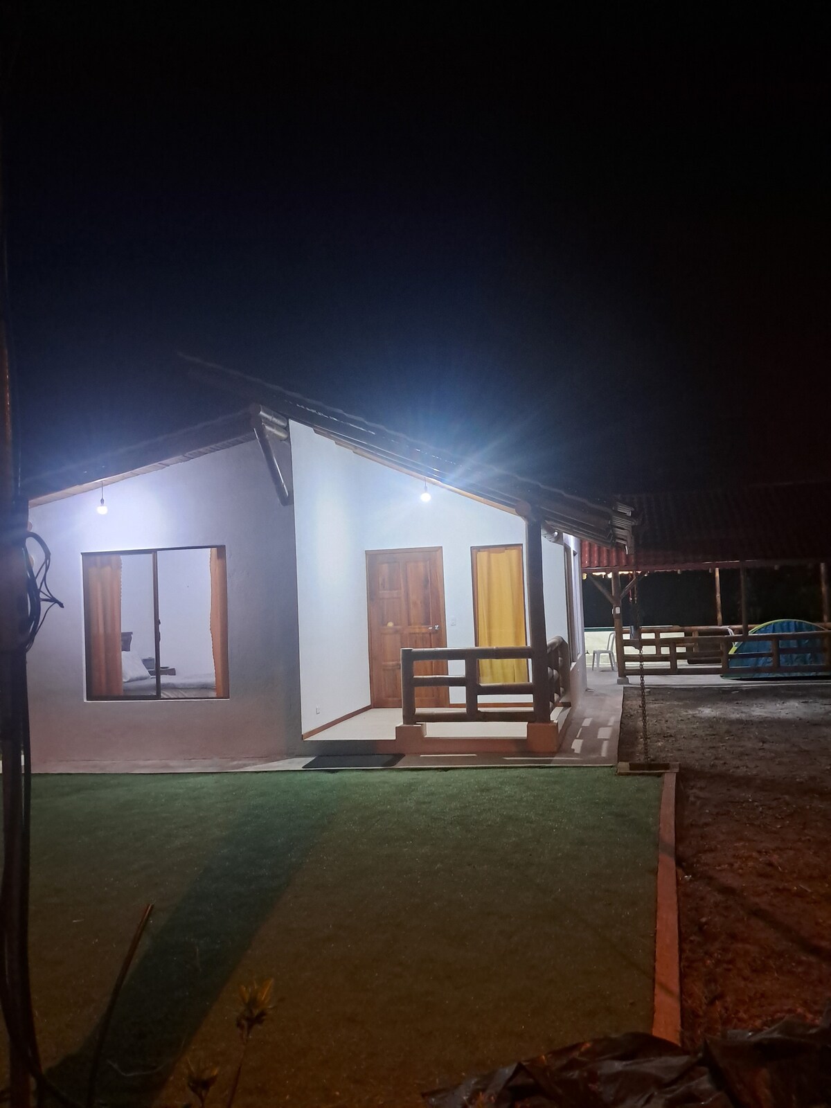 따뜻한 기후와 멋진 공동 구역을 갖춘 자연 속 이 조용한 장소에서 가족과 함께 휴식을 취하세요. 도시의 소음에서 벗어나기에 완벽한 장소입니다. 21도에서 30도 사이의 온도가 변동하는 습한 열대 기후 지역에 위치하고 있어 새 관찰 및 양서류, 곤충 등과 같은 다양한 동물을 관찰하기에 이상적인 장소입니다. 참고: 주방과 샤워실은 전기로 작동하므로 정전으로 인해 사용할 수 없습니다.