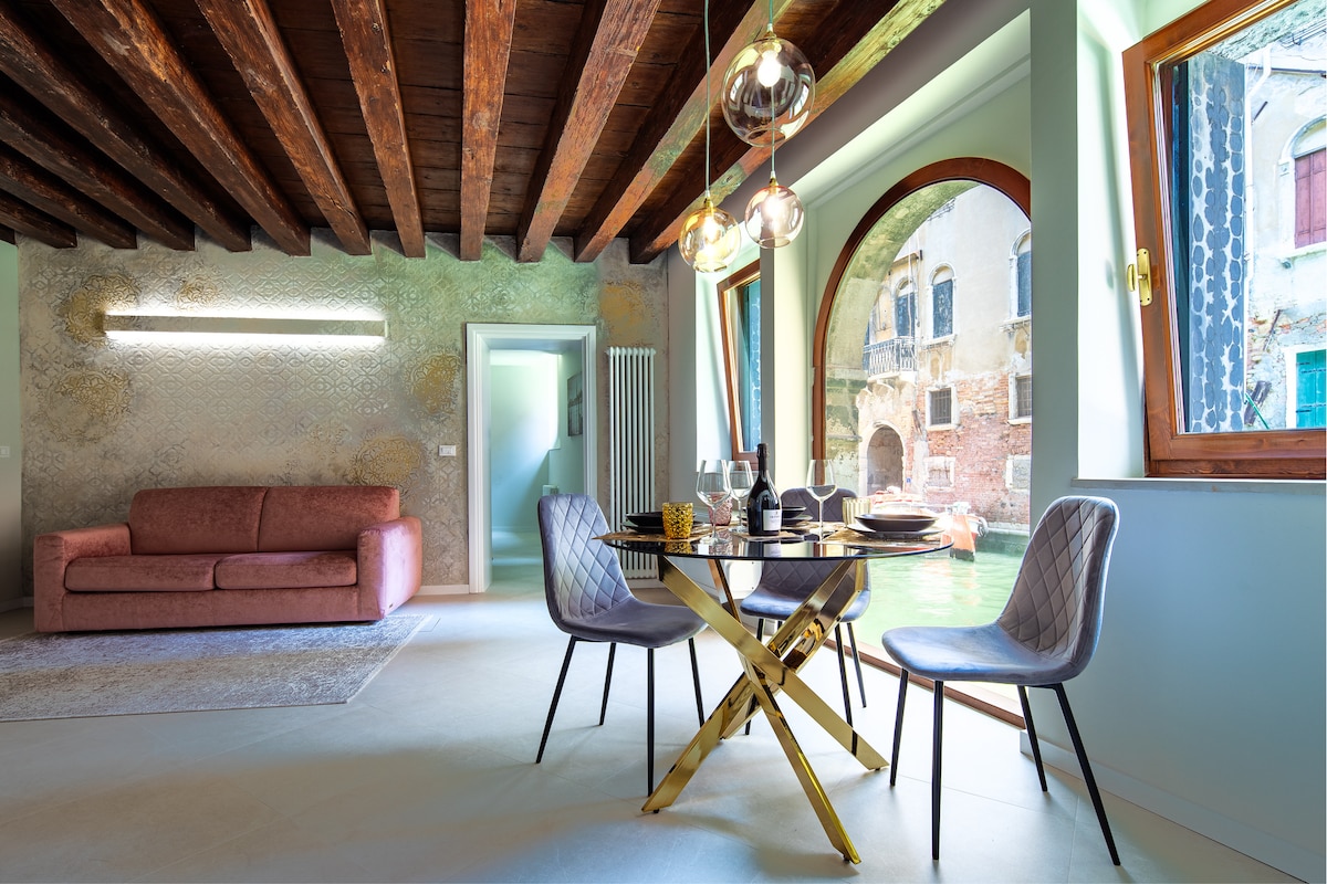 Mono-Moeca is the perfect space for those who want to explore Venice with a genuine and curious spirit, feeling like a true Venetian local for a few days. It is located on the 'mezzanine' floor of Palazzo Canal, an historic building from the 1600s in Venice. Refined and bright studio-apartment recently renovated in the heart of Venice, equipped with the most modern comforts and furnished with a minimal style but with an authentic Venetian flavor, it is ideal for couples and single travelers.