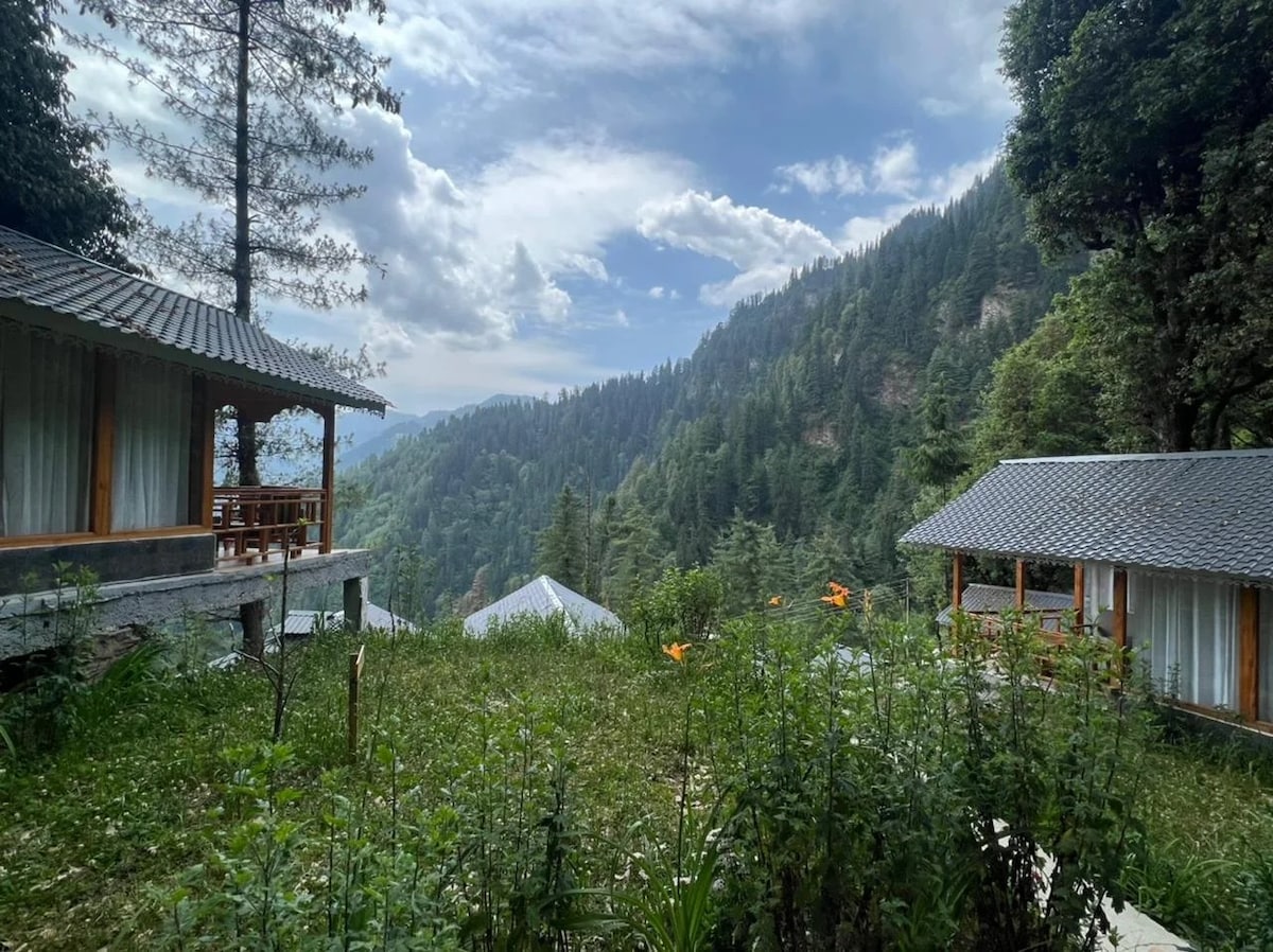 A cozy little hostel located near the bus stand but cocooned by trees and nature, facing straight into the valley 'The Blue Theep Tirthan" offers guest luxurious private rooms made from cedar wood.