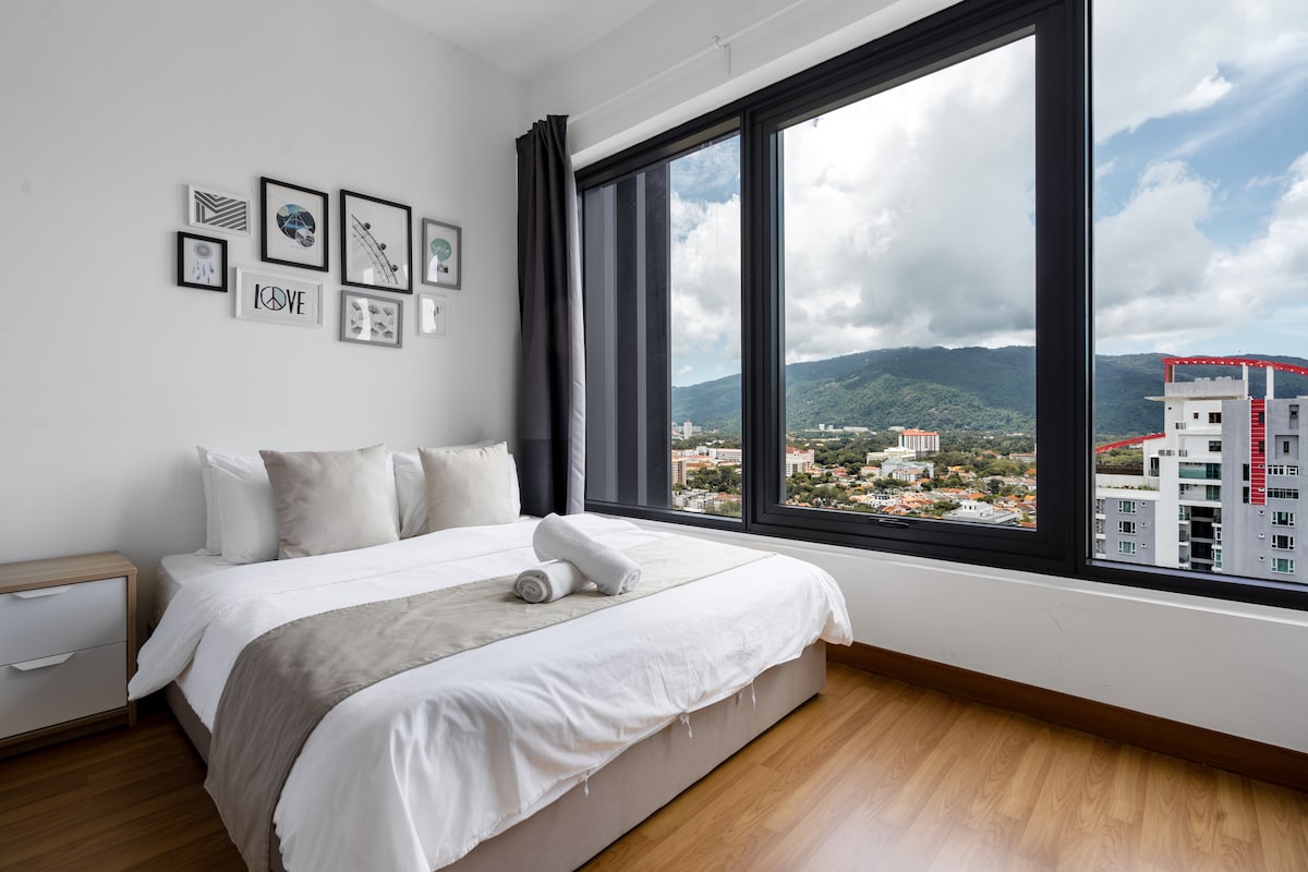 Trying to use Greenery Concept in Design To give all my guest feel relax and comfortable during their stay. * HighSpeed 100mbps Internet * Higher Floor/More spacious & Privacy/Clean/NightView of Spice Arena * Perfect fit Large Family, Traveler & Business Group * Entire Apt: Living& Dining room, Kitchen, Laundry, Balcony * Well-appointed 4 Air-con Bedroom+3 Heated bathroom * 1 Designated Parking Lot * Swimmingpool &Gym Strategic Location,Convenience Spot, Restaurant,Hypermarket,Bank,Hospital