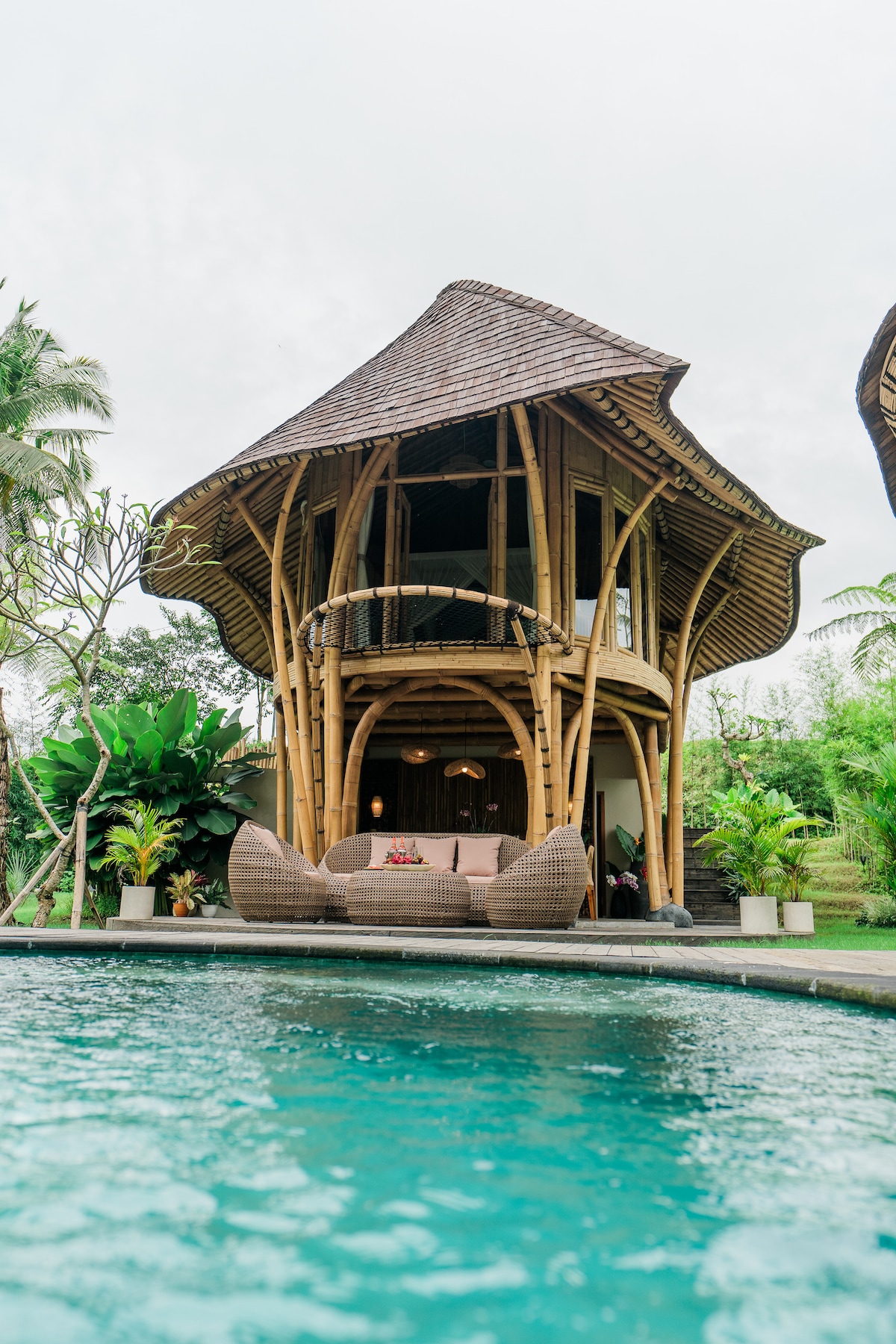 절벽 위 대나무 트리하우스 - 전용 온수 수영장
