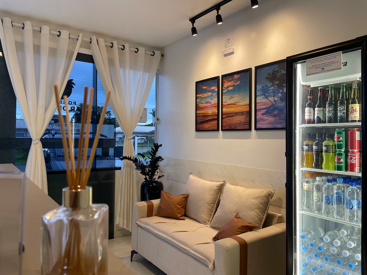 레칸토 프라이아 그란데 스위트는 페냐, SC의 주요 해변과 베토 카레로 월드 파크에서 불과 몇 분 거리에 편안하고 위치가 좋은 숙박 시설을 제공합니다. 스위트는 전용 공간이며, 실용적인 숙박에 필요한 필수품이 갖춰져 있습니다. 공용 공간에는 시설이 완비된 주방, 주차장, 아침 식사, 바비큐가 있습니다. 평온함, 좋은 구조, 지역 관광지로의 접근성이 좋은 숙소를 찾는 분들에게 이상적입니다.