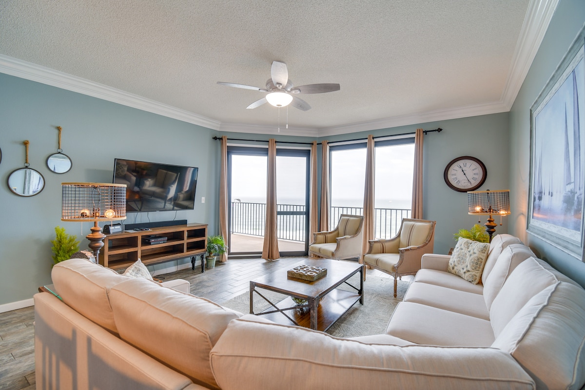 아름답게 디자인되고 세심하게 배치된 해변 콘도에 온 가족이 함께 머물러보세요. 멋진 전망, 넉넉한 거실 공간, 모든 세대를 위한 편안함을 제공합니다. 모일 수 있는 방과 휴식을 취할 수 있는 공간을 갖춘 이 숙소는 조부모, 부모, 자녀 또는 친구 그룹이 붐비지 않고 함께 즐길 수 있는 잊지 못할 해변의 날을 보내기에 완벽합니다. 바닥부터 천장까지 이어진 창문으로 탁 트인 전망을 감상할 수 있는 넓은 콘도로 일출부터 일몰까지 숨 막히는 풍경을 감상할 수 있습니다.