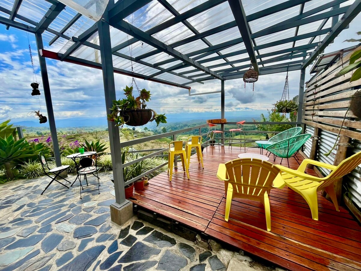 Located inside the hotel La Puesta del Sol, this private cabin is the best option for a relaxing and unique stay in Filandia. We are located 200 meters away from the main square so you have all the best restaurants, boutiques and cafes nearby. We also have the best private view point in the whole village!