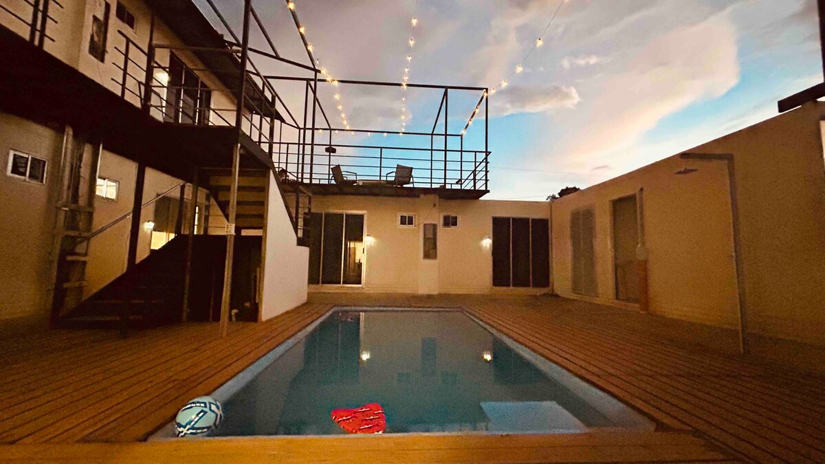 완전히 아름답고 개조된 2베드룸 패밀리 더플렉스 하우스를 즐겨보세요. 산이시드로 시내에서 차로 단 5분 거리에 있습니다. 조용하고 안전한 동네. 서핑, 스포츠 낚시, 고래와 돌고래 관찰을 위한 도미니칼 해변까지 단 35분 거리입니다. 마리노 발레나 국립공원까지 50분. 치리포 국립공원, 클라우드브리지 보호구역, 폭포, 온천 입구까지 차로 45분. 오쿨타르