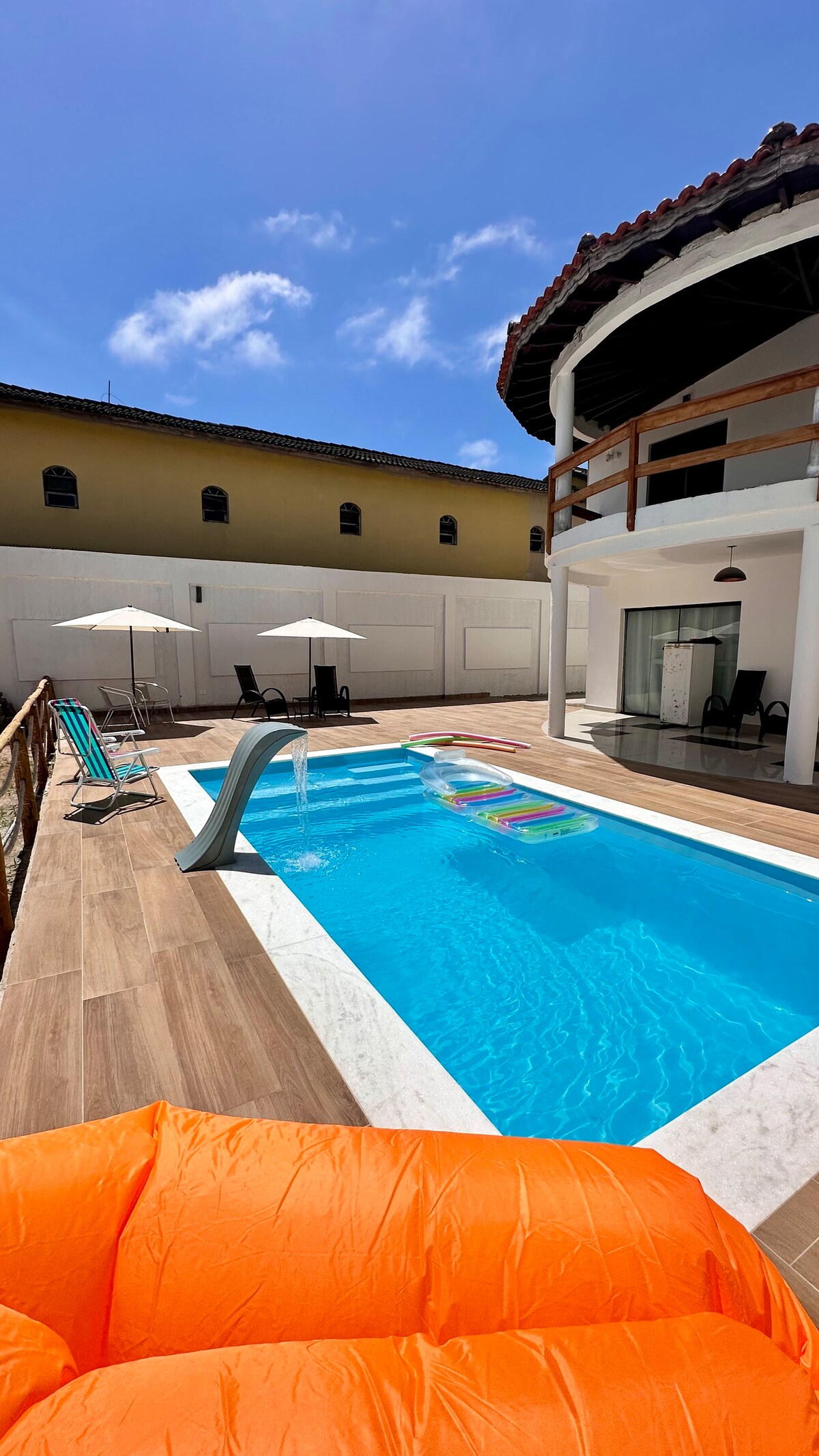 게스트 하우스(집의 별채)가 임대되며, 대형 수영장(7 X 4), 4 개의 침실(2 개의 스위트), 부지 내에 다른 집이 있지만 벽으로 분리되어 있습니다(다른 집에 거주하고 있으며 도움을 드릴 수 있습니다). 임대 공간에는 프라이버시가 보장되며, 차고 2 개, 와이파이, 5 개의 스마트 TV가 있으며, 모든 객실에 에어컨이 설치되어 있습니다. 주방과 바비큐 공간이 있는 통합 룸, 페루이베 해변의 세 번째 블록에 있는 집(해변에서 약 600m 거리). 저볼륨(AMBIENTE)으로 사운드를 사용하십시오. 과도한 사용은 허용되지 않습니다.