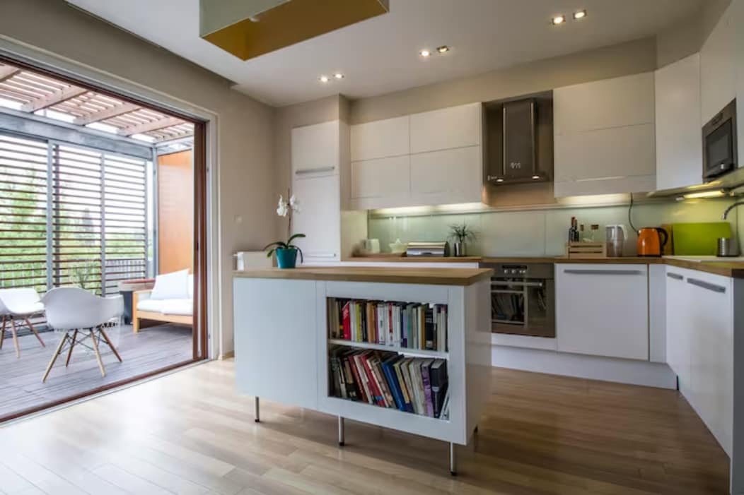 벽에서 벽으로 이어지는 창문을 통해 녹음이 가득한 마을 광장과 5구역의 유서 깊은 건물들이 내려다 보이며, 아파트에 힙하고 쾌적한 느낌을 줍니다. 인테리어는 차분하고 심플하며, 편안한 쿠션이 놓여 있어 즐거운 느낌을 줍니다. 도보로 도시를 둘러보고 공항 교통편을 쉽게 찾을 수 있습니다. 헝가리 국회의사당, 유대교 회당, 데아크 페렌츠 광장이 도보 거리에 있습니다. 레스토랑이 많고, 맞은편 광장에 있는 카페는 커피, 맥주 또는 간식을 즐기기에 좋습니다.