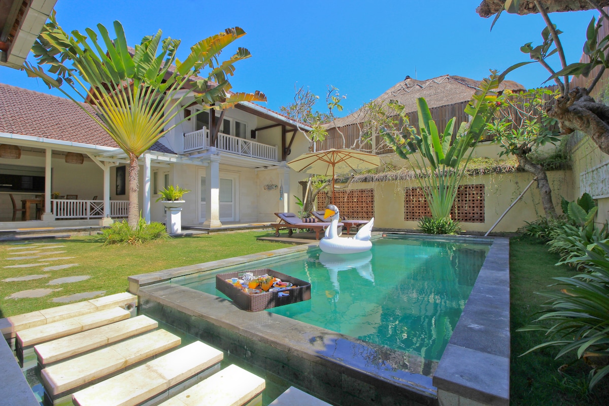 🌿 Your Own Little Bali Hideaway “A quiet, private villa surrounded by lush gardens with a sparkling pool. Perfect for relaxing escapes in Umalas, just minutes from Seminyak.” "Home away from Home"shrouded by silence and birdsong, a sunny deck, and shady gazebo — pure serenity. There’s an open-air bathroom, a fully equipped kitchen, and daily visits from Lucy the turtle by the koi pond. Simple, soulful, and relaxing — your quiet Bali escape to reset and recharge. 🌺