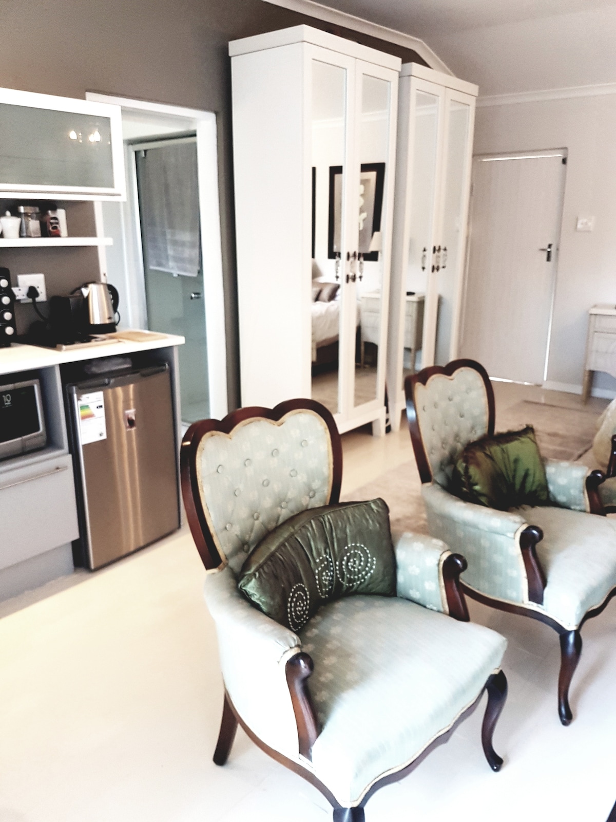 웅장한 문과 절묘하게 높은 천장이 있는 새롭고 시대를 초월하여 장식된 고급스러운 아파트에 들어가보세요. 차분한 샤워를 즐기고, 쇠퇴적인 대형 플러시 데이베드에서 포옹하고, 좋아하는 넷플릭스 시리즈를 시청하고, 무제한 와이파이를 즐기거나, 평화로운 잠에 빠져보세요. 별을 바라보며 퀸사이즈 침대에 눕아 활기찬 밤을 보내세요. 로맨틱한 만남이나 업무 휴가를 위한 완벽한 조명을 만들어보세요. 독특한 전용 정원에서 최고급 필터 커피 한 잔을 즐기는 것도 잊지 마세요.