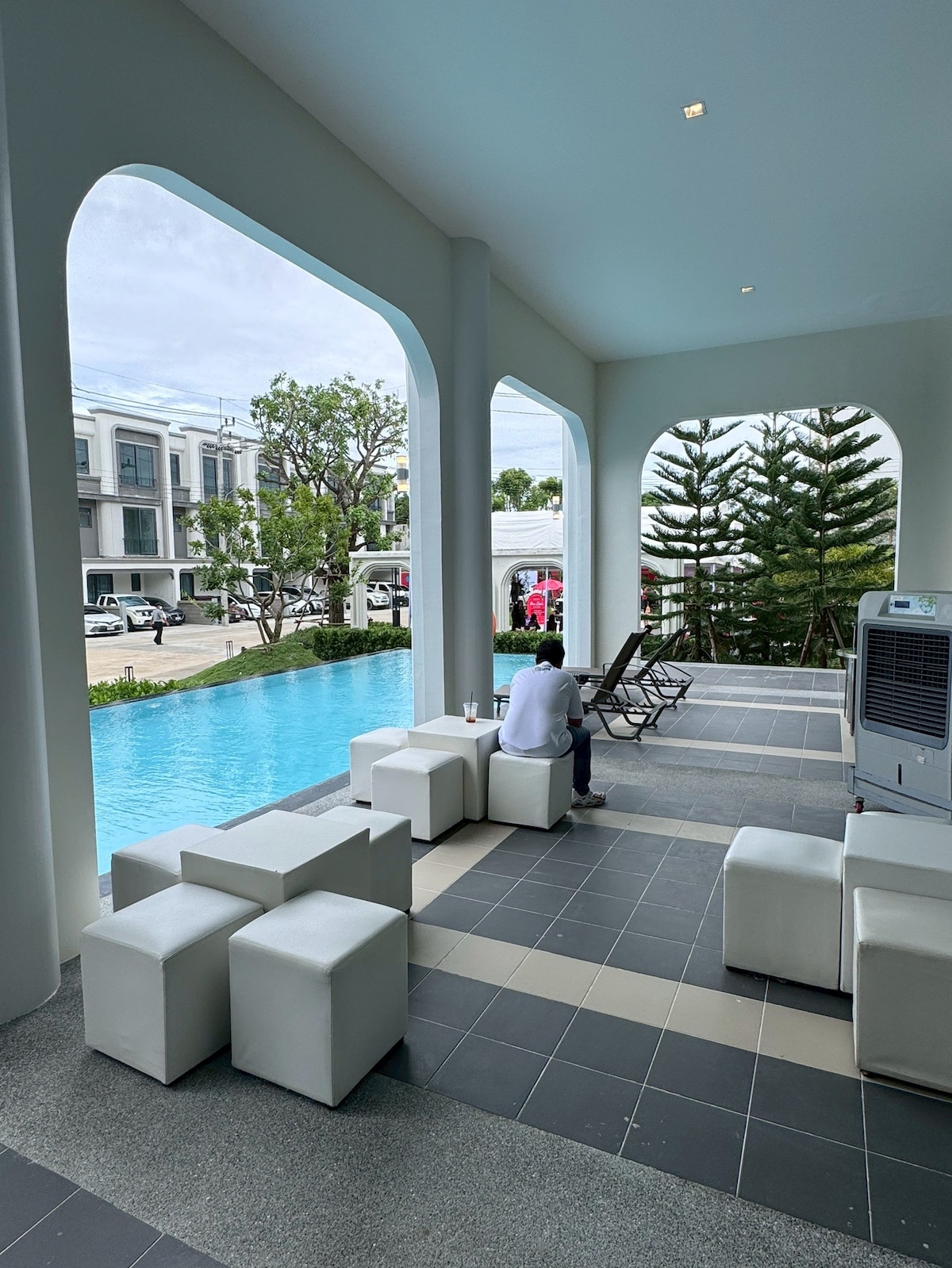 4층 건물로 계단만 있습니다(엘리베이터 없음). 현대적인 디자인의 최근에 리모델링된 타운하우스. 침실 5개, 킹 사이즈 침대 7개, 욕실 4.5개. 이 숙소는 전용 주방, 수영장 테이블, 식탁, 소파, TV가 있는 조용한 타운하우스를 갖추고 있습니다. 이 타운하우스는 가족 및 친구에게 이상적입니다. 란 사이 플라자 시장(350m), 탑스 슈퍼마켓(600m), 테미널 21 라마 3(6km)에 가까운 수많은 현지 거리 음식으로 둘러싸인 최고의 위치에 있으며, 7/11에서 100m 거리에 있습니다.