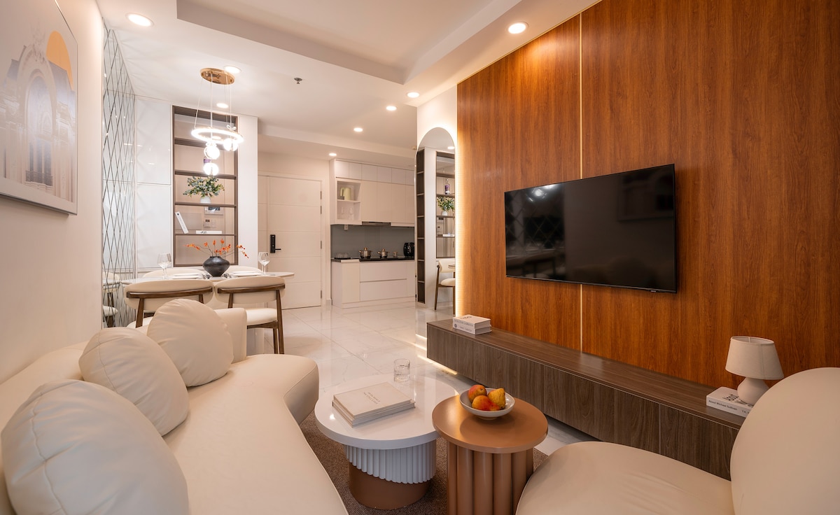 Vietnamese-Mediterranean Studio in central: • 2 km to Tan Son Nhat Airport & Phan Xich Long food street • 3 km to District 1 & major attractions, 4 km to Notre-Dame Cathedral Surrounded by popular Vietnamese eateries • Spacious bed (up to 3 guests) • Modern bathroom with bathtub & toiletries • Parking for cars & motorbikes • Café downstairs & photogenic corners • Projector, water purifier, coffee machine Enjoy thoughtful hospitality blending international touches with classic Vietnamese charm.