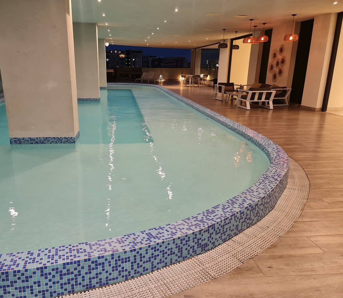 • 산토도밍고 한복판에 위치 • 넓은 810평방피트, 침실 1개, 침대 1개 + 소파 베드 1개 •커플 및 재택근무에 적합 • 수영장, 자쿠지, 헬스장, 마사지 공간이 있는 옥상 • 옥상은 공용 공간입니다. •연중무휴 로비 서비스 • 모든 기본 가전제품이 갖춰진 주방 • 멋진 전망을 볼 수 있는 발코니 •58인치 스마트 TV • 무료 무선 와이파이, 넷플릭스, 전용 주차장 • 휴식을 취하고 먹고 쇼핑을 즐길 수 있는 훌륭한 장소까지 도보로 몇 분