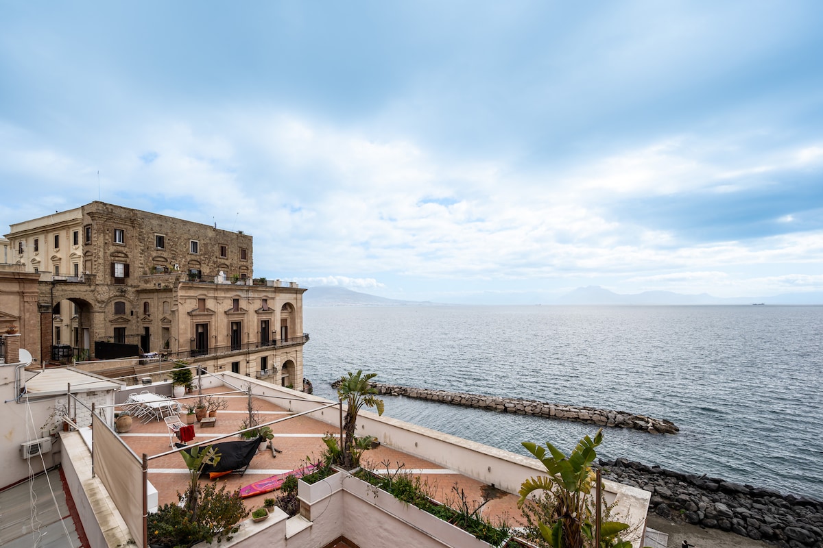 숨막히는 파노라마. 바닷가에 위치한 고급 건물. Piazza del Plebiscito, Monte Echia, Quartieri Spagnoli, Napoli Sotterranea, San Gregorio Armeno, Cappella San Severo에서 몇 걸음 거리에 있습니다. 엘리베이터가 있는 7층. 침실, 욕실, 더블 소파 베드가 있는 거실, 주방, 식사 공간. 테이블이 있는 바다가 보이는 발코니. 카프리, 이스키아, 프로치다까지 도보 거리 하이드로포일/페리. 매우 중심적이고 실질적으로 물가에서