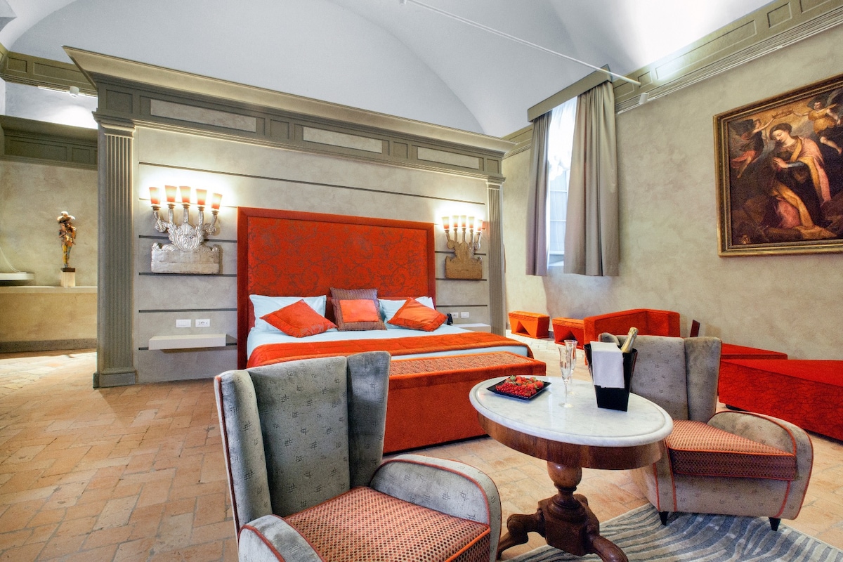 Relais Santa Caterina della Rosa는 16세기 궁전, 옛 수녀원, 산타 카테리나 보존소의 역사적인 소재지에 위치해 있습니다. 어퍼 스위트는 90평방미터의 독특한 위치로 완전히 프레스코화되어 있으며, 아래 교회 복도에서 바로 내려다보이는 창문이 있습니다. 와이파이, 스마트 TV, 냉장고 바, 와인 저장고, 에어컨이 갖춰져 있으며, 역사적인 중심지에서 독특한 숙소를 선택하는 가족 또는 소규모 그룹에게 이상적인 솔루션입니다.