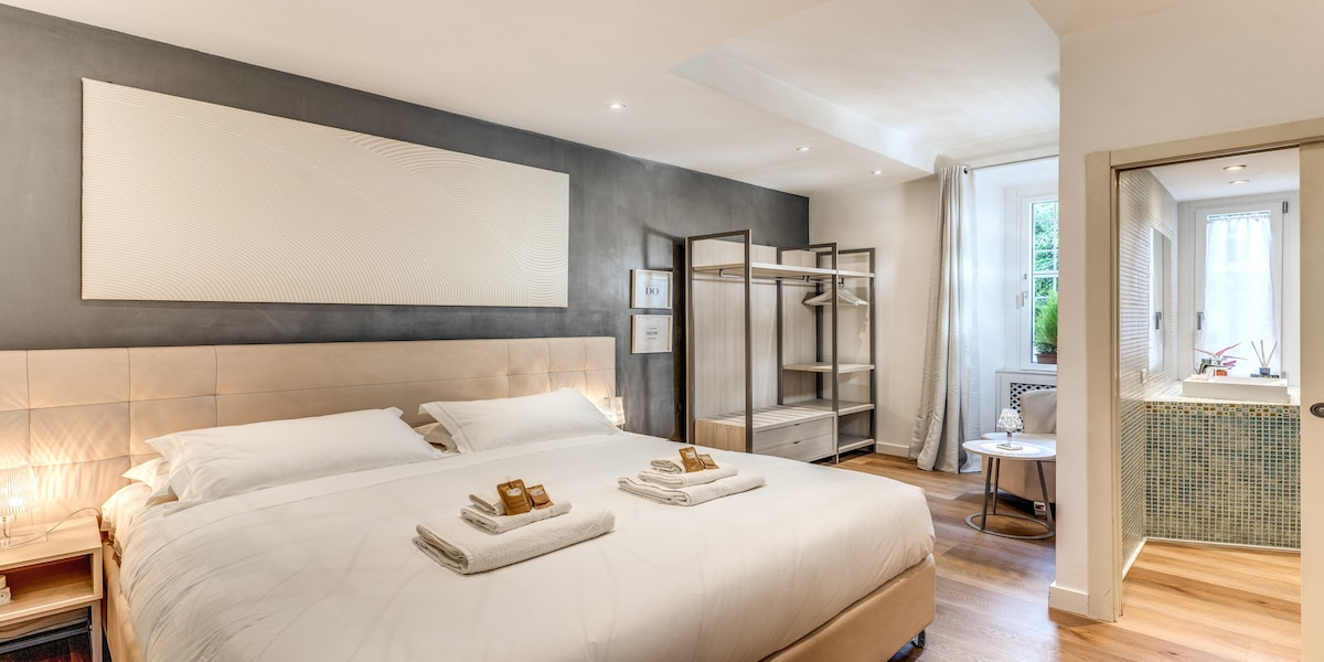 Experience five-star Roman living ⭐⭐⭐⭐⭐ in an ancient Roman warehouse transformed into a stylish design loft. 🌿 Enjoy a peaceful oasis in a 2,000 m² Private communal park in the heart of Rome. This unique space, featuring original stone walls, a private cinema, and modern comforts, is perfect for couples and families seeking an unforgettable stay. ✨ A one-of-a-kind atmosphere: here, History can be breathed in, touched, and truly lived.