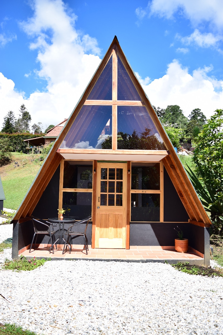Discover this beautiful Glamping at just 45 minutes from Medellin. At our ecolodge, you can book coffee, cacao, Comuna 13 & Guatapé tours as well as massages & transportation. Our staff is available until 4:00 AM, taxis can be arranged to bring you directly to your cabin from the airport. We run our own Skyline Foundation planting native trees, teaching yoga, music & English classes to local schools. Our water supply mainly comes from purified rain and the project runs on solar energy 🍀❤️