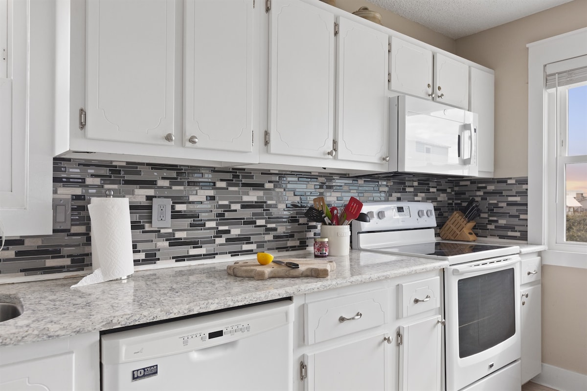 * 사랑스러운 비치 하우스, 침실 2개, 욕실 2개, 6명 수용. 해변까지 몇 걸음 거리에 있습니다. 해변뷰 * 반려견 환영 * * 오픈 데크 * * 무료 전화 및 와이파이 * * 2층 아름다운 복층 해변 숙소 * Br 's 2개, 욕실 2개 * 대형 오픈 데크 * 아름다운 백사장으로 가는 계단 * * 조용하고 고요한 위치 * 쿼츠 카운터 탑이 있는 최신식 주방과 제빙기가 있는 최신식 냉장고 * 새로운 세르타 퍼펙트 슬리퍼 매트리스.. * 밀도가 낮은 지역.. 붐비지 않는 자연 * 케이프 전체를 따라 자전거 트레일