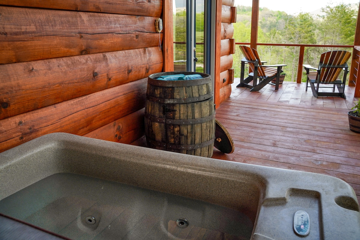 SkyView Lodge is a log cabin built with a view of the Cherokee National and the Smoky Mountain National Forest. Its design maximizes enjoying the incredible views from every room. Ideally located close to white water rafting, zip-lining, hiking, & scenic drives. Within driving distance of the cities of Gatlinburg (35 min), Pigeon Forge (40 min), Tennessee, & Asheville (1 hr) & Hot Springs, NC The Foothills Parkway can be seen from the property. Visit our Youtube channel for a walk through