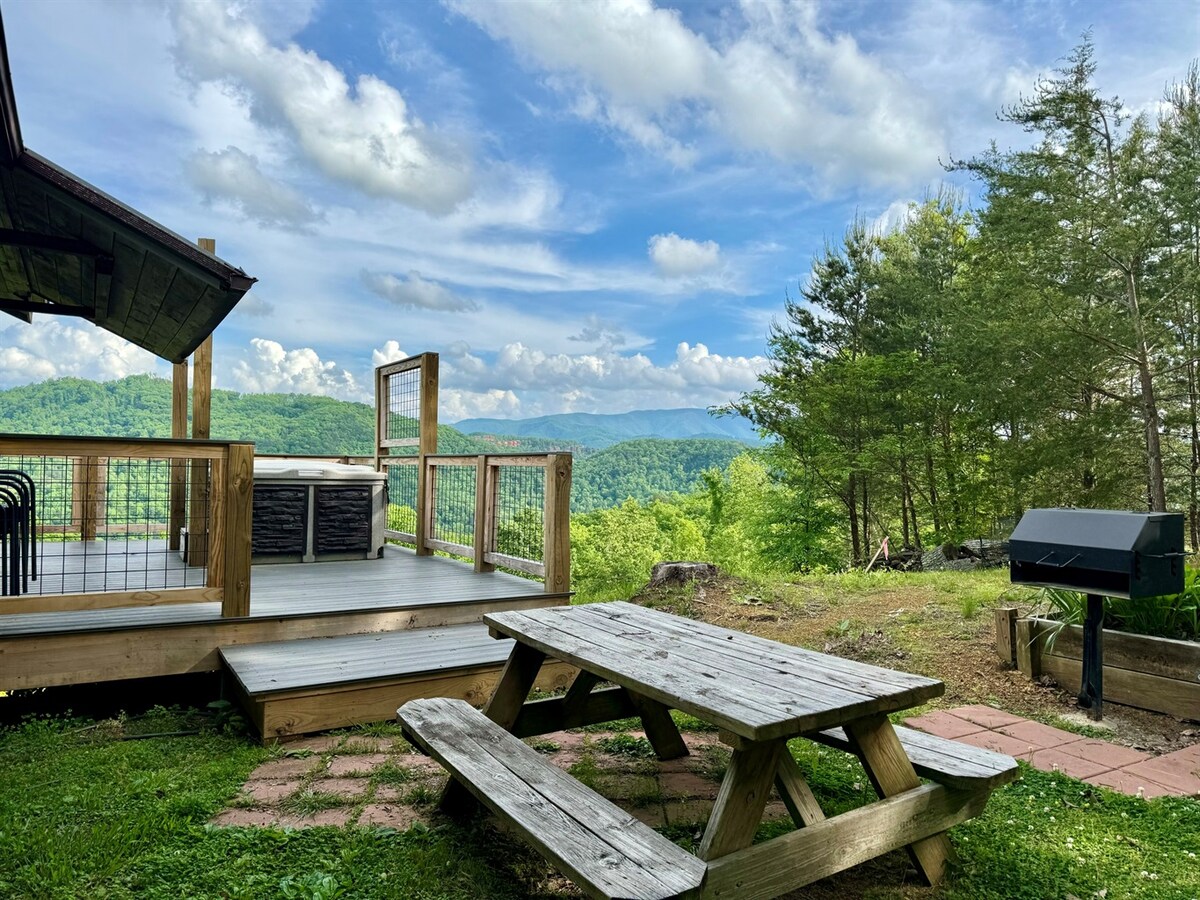 Welcome to Shine On Chalet, our beautiful, inviting space for honeymooners, couples, and small families to enjoy! This lovely cabin is located in a beautiful gated resort with mountain views and community pool. Our location is great for exploring the Smoky Mountains and local attractions! This updated chalet boasts : - prime location behind Dollywood - large outdoor jetted hot tub - fast WiFi - 2 TV's w/ Roku 4k streaming - multi-cade - stocked kitchen -new custom tiled shower No pets allowed!