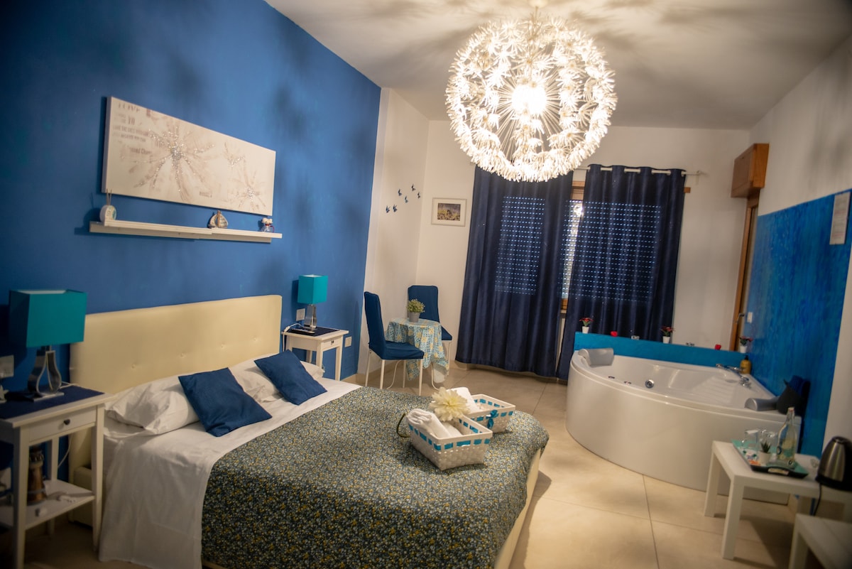 Le confortevoli camere matrimoniali sono dotate di smart-TV, WIFI, scrivania, asciugacapelli, condizionatore e soprattutto vasca idromassaggio.