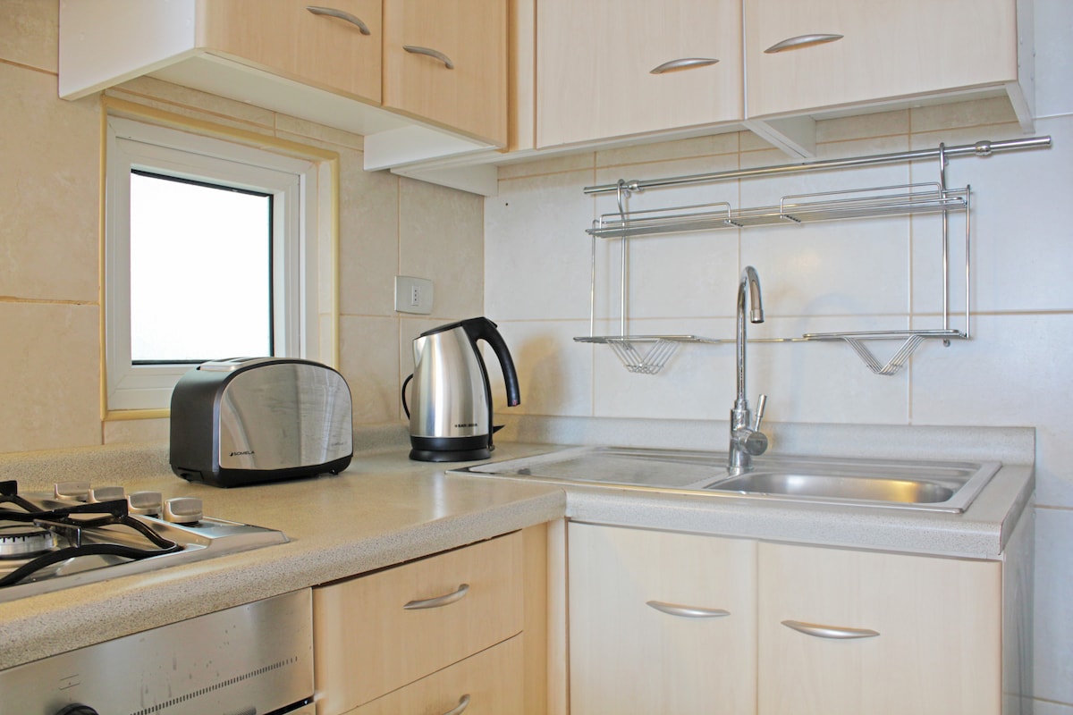 조용한 콘도미니엄에 위치한 편안한 숙소, 바다 전망.
