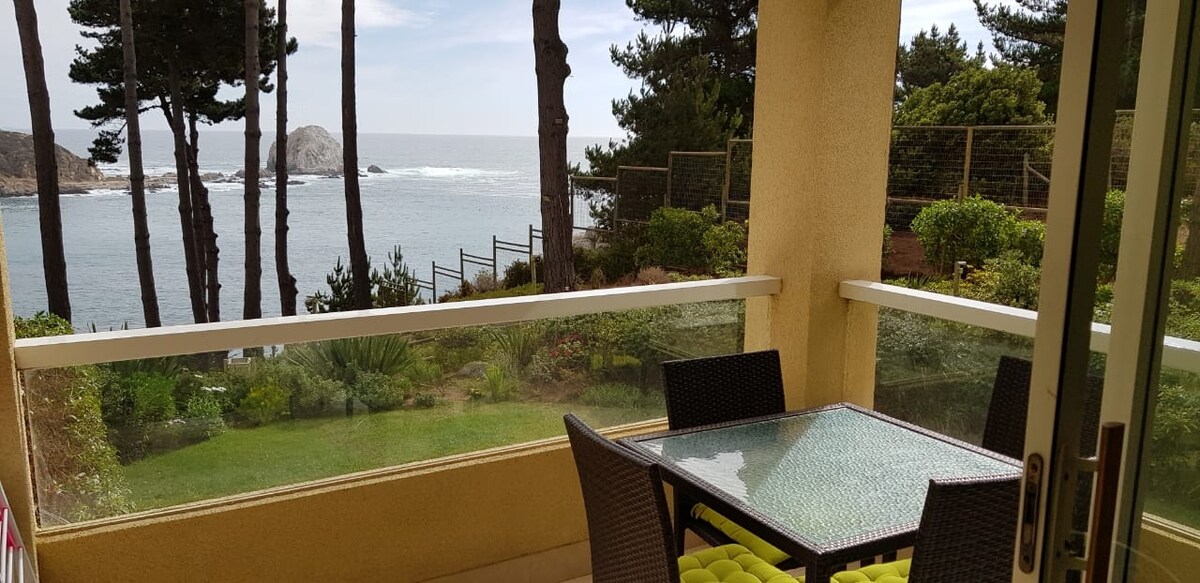 Hermoso departamento frente a playa El Canelillo. Ideal para disfrutar en pareja o una escapada con amigos. Situado en un sector privilegiado de Algarrobo, un lugar muy tranquilo unico y familiar. Depto. amplio ideal para 5-6 personas, full equipado. -2 habitaciones - 2 Baños ( matrimonial/visitas) - cocina americana - Living -Logia - Amplia terraza con vista al mar -Parrilla a gas -3 Piscinas frias + 1 Temperada - Quinchos -Bajada privada a playa el canelillo Zona de juegos para niños