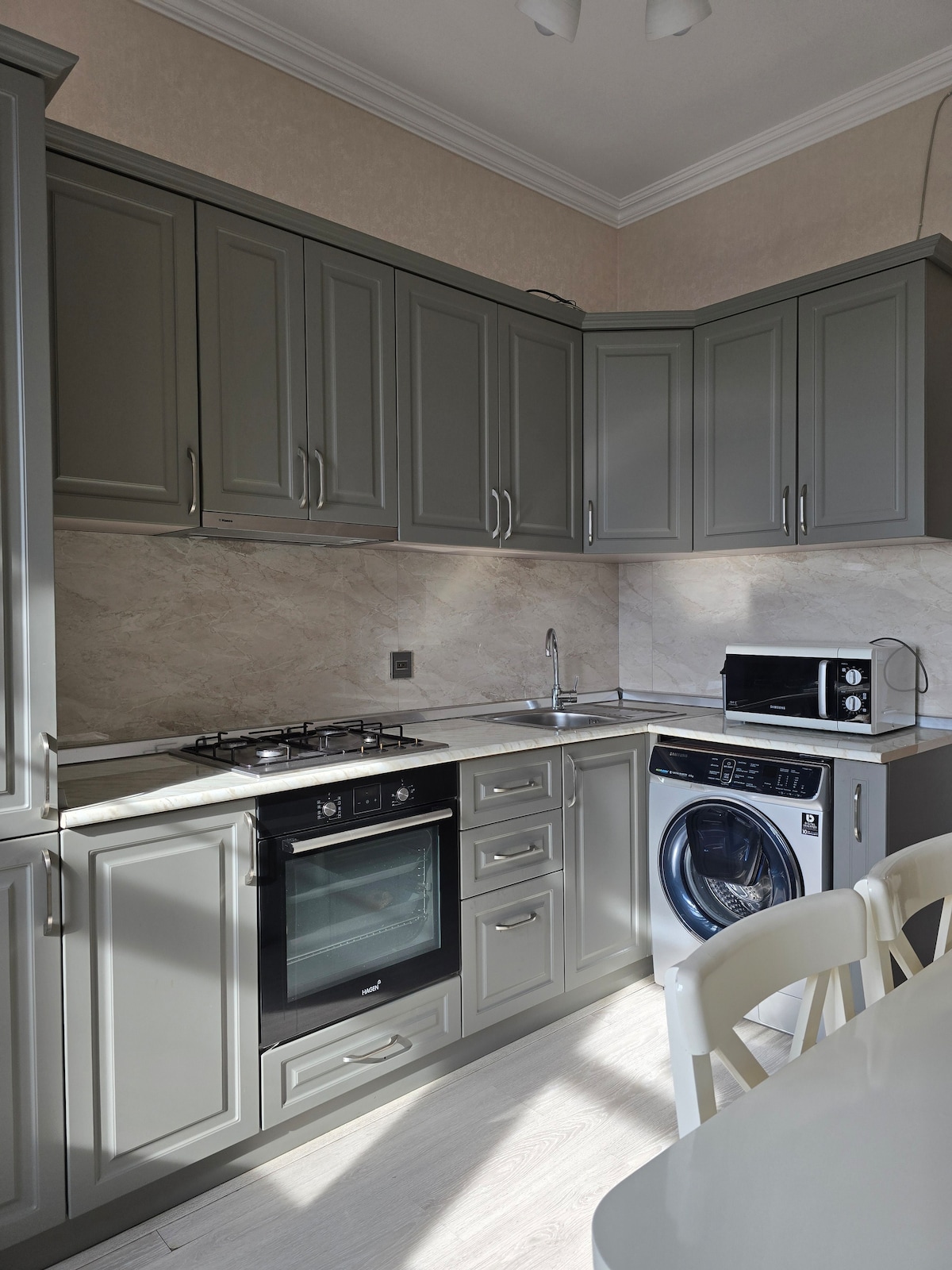 바쿠 공항 & BOS 옆 숙소 – COP29에 최적! GYD 공항에서 차로 단 5분 거리에 위치한 완전히 개조된 2층 숙소에 오신 것을 환영합니다. 이 넓은 150평방미터의 숙소는 도시를 여행하는 가족이나 단체에게 편안함과 편리함이 완벽하게 어우러진 숙소입니다. 밝고 쾌적한 객실 4개, 현대적인 욕실 2개, 아침 커피를 즐길 수 있는 대형 발코니를 갖춘 저희 숙소는 편안한 숙박을 위해 필요한 모든 것을 제공하도록 설계되었습니다.