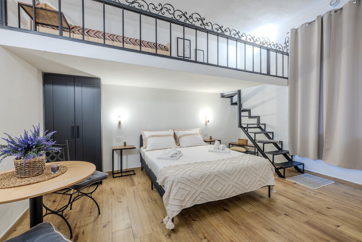 A duplex penthouse above Olbia's historic center -private rooftop terrace with harbor and Tavolara views, a designer CREO kitchen, and a king bed with premium linens. Walk to Corso Umberto in 1 minute, or drive to Sardinia's best beaches in 10. We include a full beach kit (parasol, fast-drying microfiber towels, cool bag with freeze elements) and a welcome box with local wine, pecorino, and Sardinian treats. 27 five-star reviews, perfect 5.0 rating. Managed by RENTAL12 - We respond in minutes.