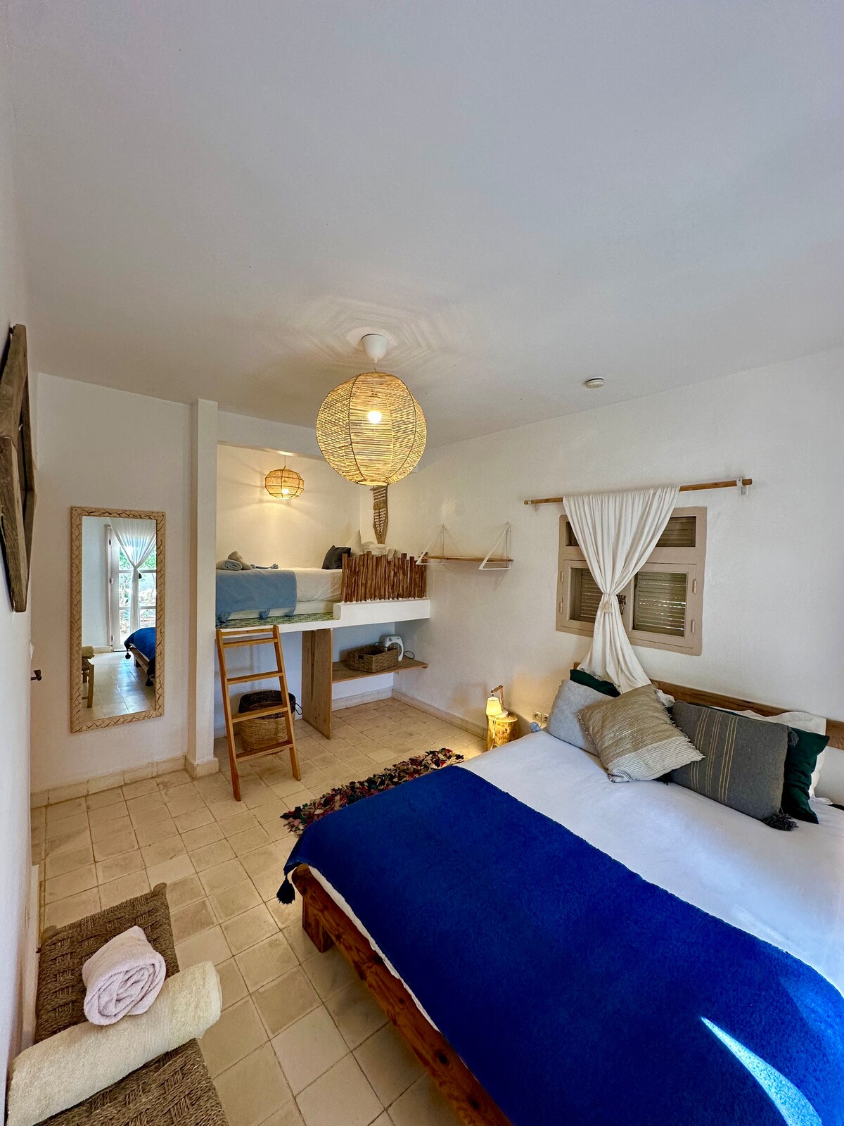 마마 로바 1 스위트는 전통적인 우아함과 현대적인 편안함이 어우러진 에사우이라 중심부에서 독특한 경험을 제공합니다. 궁전 침대와 매트리스 토퍼가 있는 넓은 침실 2개가 구비되어 있어 탁월한 수면을 보장합니다. 고귀한 현지 재료로 꾸며진 이 스위트는 조화롭고 친밀한 공간을 제공합니다. 기억에 남는 숙박을 위해 테라스에서 제공되는 천연 목욕 제품과 맛있는 아침 식사를 즐기세요.