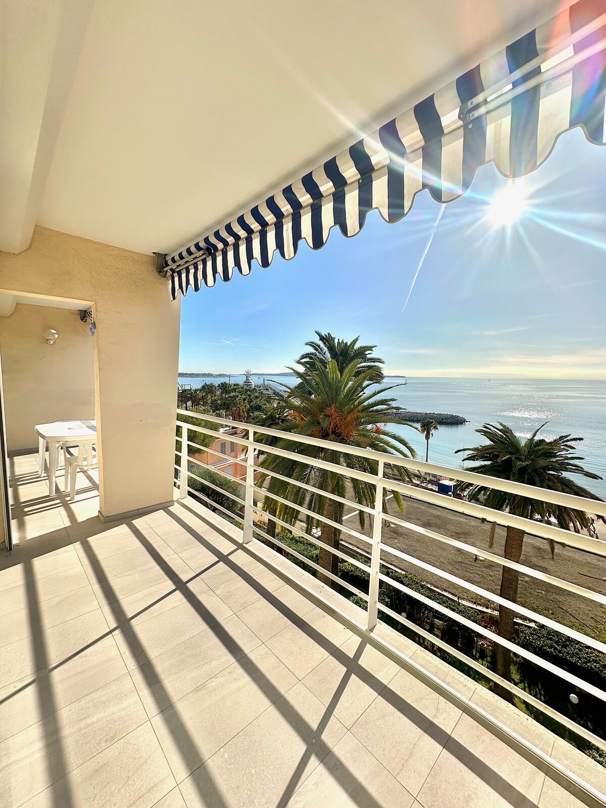 멋진 스튜디오 25m2 테라스, 밝은 채광, 멋진 인테리어 전용 주차장 "에투알드프랑스"에서 3성급으로 평가 카밀 레이옹 항구를 마주한 바다의 탁 트인 전망 8층 최상층, 엘리베이터 있음 상점, 해변, 레스토랑 근처 에어컨 TV (넷플릭스, 프라임 비디오) 와이파이 (1 Gb/s & 700 Mb/s) 대중교통(버스 및 기차) 도심과 기차역까지 도보로 5분 거리 앙티브/쥐안레팽 1.5km, 칸 5km 니스 공항은 버스나 기차로 30분 거리에 있습니다. 금연