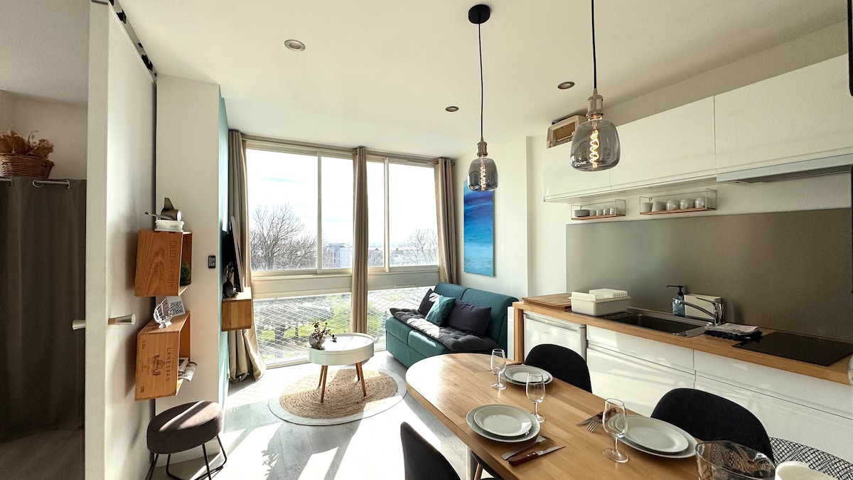 르 니드 다무르 – 2층 엘리베이터, 최근에 지어진 안전한 주거지, 해변까지 7분 거리. 커플에게 이상적: 퀸사이즈 침대, 침구 제공, 에어컨, 발코니, 광섬유, 세탁기 및 식기세척기. 시내: 상점, 시장에 도보로 갈 수 있는 거리. 자전거 보관실 폐쇄. 옵션: 게이트가 있는 주거 주차 공간 – €8/일 또는 €50/주. 예약 시 명시해야 할 사항 3성급 숙소