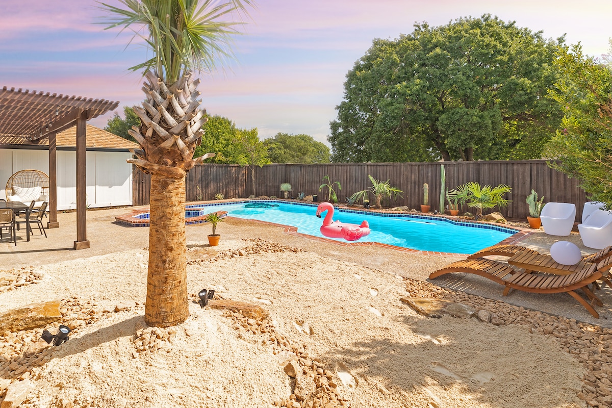 월드컵 홈베이스에 오신 것을 환영합니다! 팬 페스트 및 IBC 근처에 위치! 북적거리는 댈러스에서 벗어나 정원에 위치한 개인 게스트하우스로 떠나보세요! 수영장 옆에서 휴식을 취하거나 온수 욕조에서 휴식을 취해보세요. 게스트 하우스에는 퀸사이즈 침대, 전신 욕조, 간이 주방, 빠른 와이파이, TV 넷플릭스/아마존 프라임 등이 있습니다! 청소비와 체크아웃 체크리스트가 없습니다! 할인된 주간/월간 요금을 확인해보세요! 도심 속 시골!