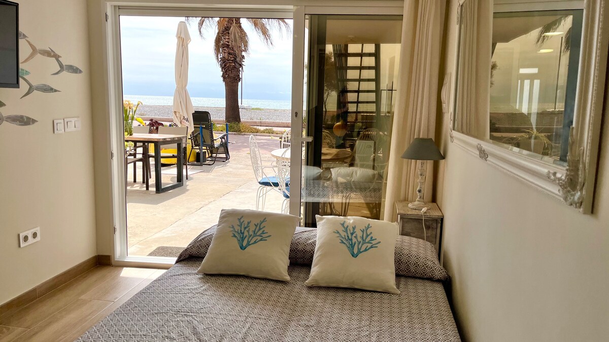 Hemos cuidado los detalles para crear un pequeño loft donde disfrutar del paisaje y del sonido del mar. Se trata de un pequeño espacio totalmente diáfano, de 24 metros cuadrados, junto al mar donde la zona de estar se transforma en zona de noche mediante un sofá fácilmente convertible en cama de matrimonio. Posee un ventanal abierto al mar. La sensación es de estar en la playa pero con todas las comodidades. En dos pasos estás en el agua.....