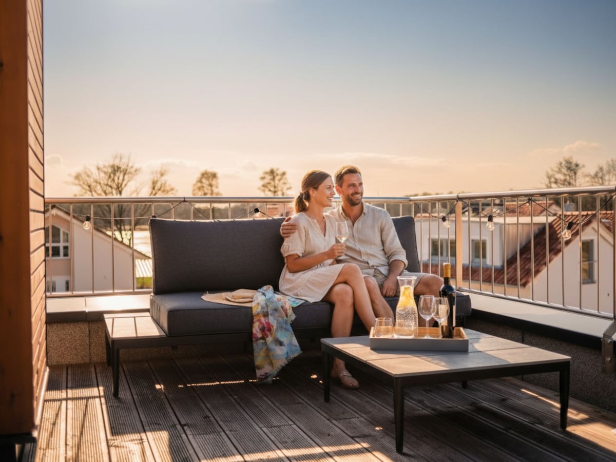 신선한 연인을 위한 오아시스: 60평방미터가 넘는 순수한 휴식. 환상적인 전망을 자랑하는 넓은 테라스 2개를 포함해서요. 더블 침대가 있는 침실, 대형 샤워실, 소파 베드가 있는 거실이 있습니다. 접근성이 높음. 밝고 빛이 잘 통하며 개별적으로 사랑스럽게 설계된 공간. 특별한 분위기의 조화로운 배치로 개별적으로 엄선된 가구.