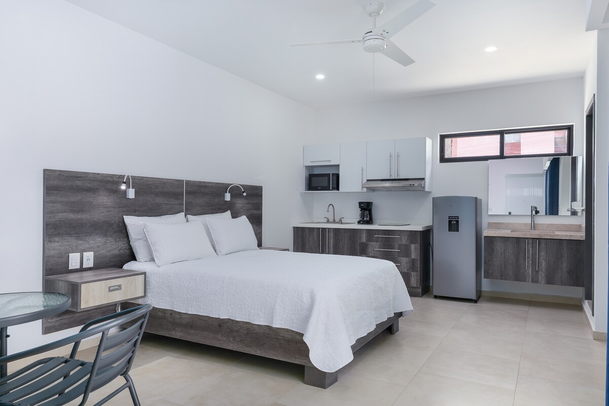In a completely new space, Casa Xtao is the perfect option for those seeking greater comfort and spacious rooms during their stay. This room offers a cozy environment equipped with a kitchenette, refrigerator, microwave and coffee maker, ideal for preparing light meals and snacks at any time of the day. The balcony of the room is the perfect place to relax after a day of sightseeing or work, likewise the window allows the entry of a large amount of natural light.