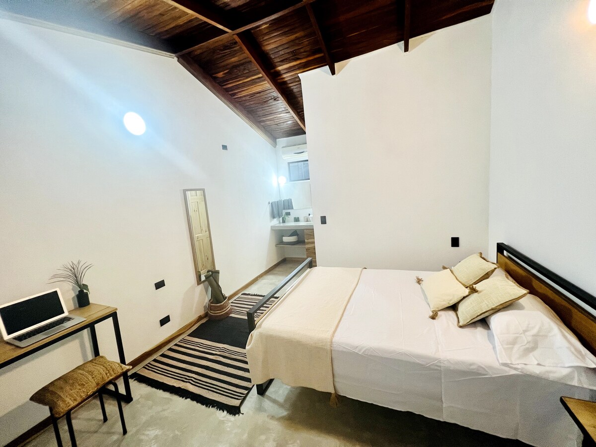 플라야 아벨라나스 한가운데에 자리한 고요한 친환경 럭셔리 휴양지인 카사 드 세이바에 오신 것을 환영합니다. 고급스러움과 자연을 완벽하게 조화시키고자 하는 사람들을 위해 설계된 이 햇살 가득한 안식처는 따뜻한 목재 톤, 지속 가능한 소재, 개방적이고 쾌적한 디자인으로 유기농 생활을 선보입니다. 숙소 내부는 세심하게 디자인된 침실 1개/욕실 1개 + 로프트 레이아웃으로 구성되어 있으며, 고급 가전제품과 가구가 구비되어 있습니다. 커플, 소규모 가족, 서퍼 또는 평온을 갈망하는 원격 근무자에게 이상적입니다.