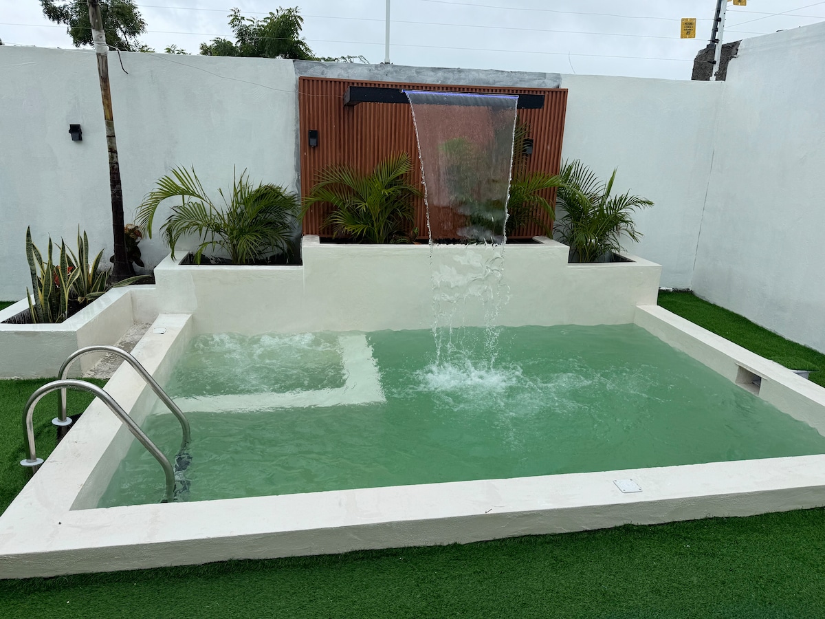 Acogedor apartamento, en planta baja. Tiene 2 habitaciones con aire acondicionado y ventilador de techo, 1 baño, agua caliente (baño) patio con área social; jacuzzi privado con (agua temperatura ambiente), barbacoa, 1 baño, parqueo privado con portón eléctrico. Buena ubicación, en una de las principales avenidas de la ciudad. A escasos minutos de mini market- , cajeros automáticos, y restaurantes de alimentación.