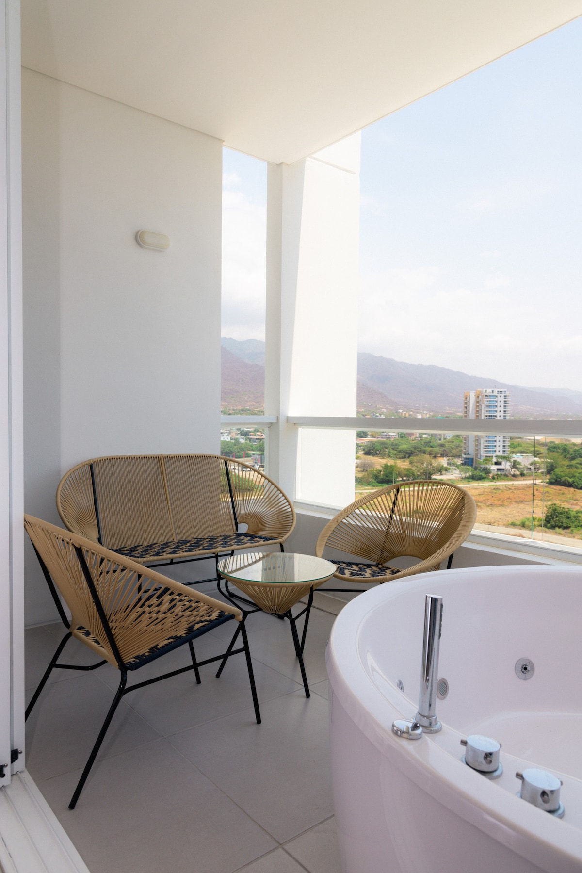 Escape to our stunning 17th-floor penthouse in Santa Marta's exclusive Bello Horizonte. This unique suite offers panoramic Caribbean Sea and Sierra Nevada mountain views from a private balcony with a hot tub. Perfect for up to 5 guests, it features modern amenities, direct beach access, and resort-style pools. Experience luxury and relaxation just moments from top restaurants and shops. Your ultimate coastal and mountain retreat awaits!