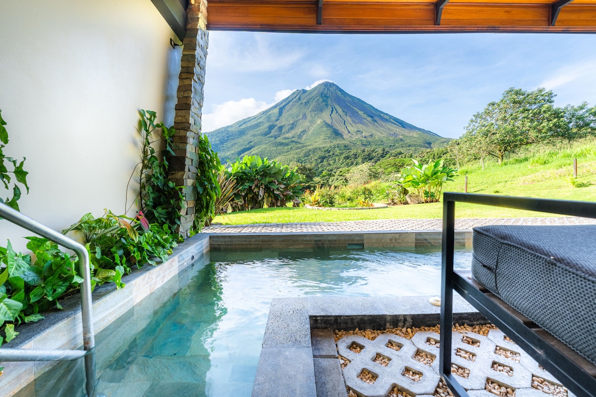 정원, 나비, 벌새로 둘러싸인 이 조용하고 우아한 공간에서 휴식을 취하십시오. 빌라 루나 델 아레날은 넓은 덕에 뛰어나며, 디럭스 스위트, 전용 자쿠지를 갖춘 테라스, 아레날 화산과 주변 산의 장엄한 전망, 완비된 주방을 갖추고 있습니다. 코스타리카 산 카를로스의 라 포르투나 중앙 공원에서 10분 거리에 있는 훌륭한 위치로, 이 지역의 주요 관광 명소가 불과 몇 분 거리에 있습니다.
