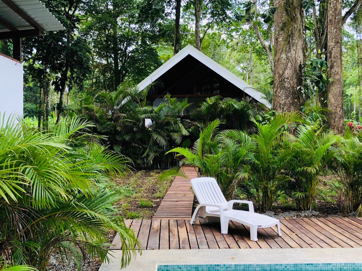 테라스, 해먹, 와이파이, 에어컨, 온수, 시설이 완비된 주방이 있는 아름다운 2인용 에코 방갈로, 울창한 열대 정원 안에 수영장이 있는 작은 부지에 있습니다. * 플라야 치키타 해변까지 도보로 5분 거리이며, 푸에르토 비에호 시내까지 차로 12분 거리입니다. * 그늘진 주차와 숙소에 전기차용 충전 포트 2개 (220 및 110V)!