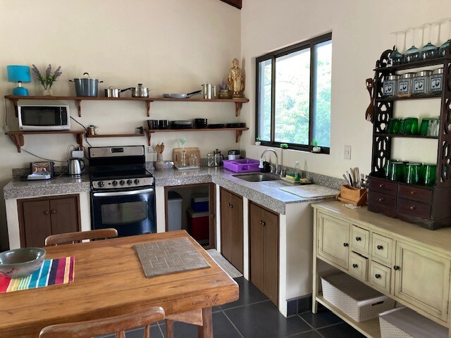 빌라 뱀부는 코팔 해변에서 100m 거리에 있는 아름다운 신축 주택입니다. 이 위층에는 침실 2개가 있습니다. 하나는 에어컨이 설치되어 있고 킹사이즈 침대가 있고, 다른 하나는 선풍기가 설치되어 있고 퀸사이즈 침대와 싱글 침대가 있습니다. 세탁기가 있는 욕실, 대형 주방, 대형 일광욕실, 에어컨이 설치된 거실이 있습니다. 숙소 뒤편에 전용 출입구가 있습니다. 좋은 와이파이. 뒤쪽에 전용 주차장과 수영장이 있습니다. 숙소 3면에 이웃이 없습니다. 카이트 스쿨인 카이트보드코스타리카는 코팔 해변에 있습니다.