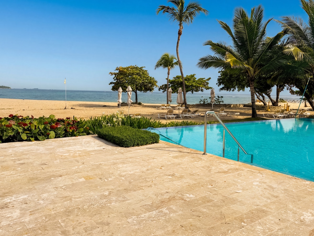 Escape to this NEW Luxurious and Modern Beachfront Condo on Playa Dorada Puerto Plata, Dominican Republic. All needed to enjoy a pleasant, peaceful and safe stay; with direct access to the beach, the double terrace that leads you to the swimming pool, a gazebo and gym; accessible upscale golf campus, restaurants inside the complex, close to shopping center, the international airport, and many attractions like water park, cable cars, historic center, nightclubs and more.