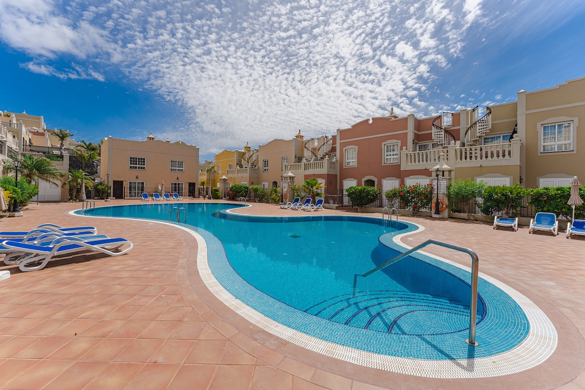 Relájate y desconecta en este alojamiento tranquilo, elegante y cómodo para disfrutar plenamente de tu estancia. El complejo tiene dos piscinas con solarium, bares y un minimarket. En Golf del Sur podrás encontrar todo lo que necesitas para unas vacaciones increíbles. El pueblo tiene, a parte de numerosos bares y restaurantes, dos campos de golf, un spa, supermercados, zona de paseo marítimo, la marina con centros de excursiones y optimas conexiones para alcanzar la mejores playas de la isla.
