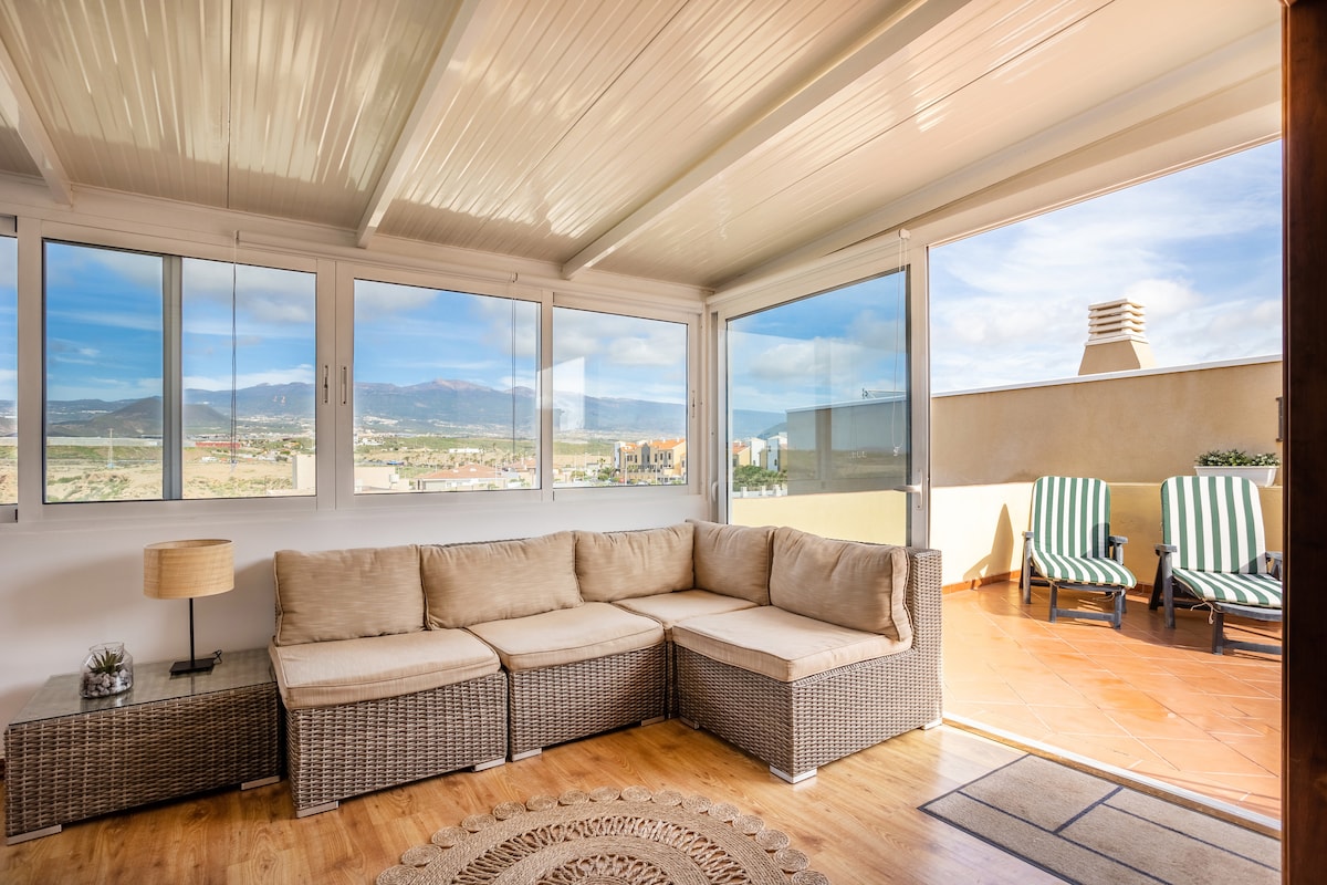 Enjoy the warmth of this quiet and central accommodation in the heart of Los Cristianos, Arona. With views of both the sea and the mountains, the accommodation is surrounded by bars and restaurants where you can enjoy both food and company. With 25ºC as the average temperature, the accommodation is located in one of the best places on the island where good weather is guaranteed. It has a large terrace where you can eat, as well as an attic-solarium.