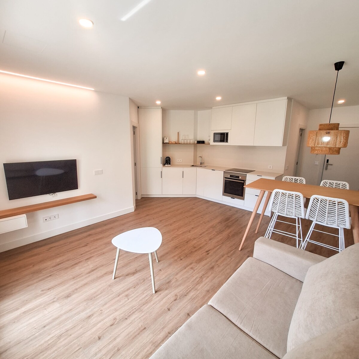 Apartamento a estrenar a 180 metros de la playa Silgar en Sanxenxo. Cocina americana, salón con sofá cama de gama alta de 1,60 (Marmota Premium), Smart TV, dormitorio principal con cama de 1,50 (Marmota Hybrid Premium), vestidor, cuarto de baño, lavandería y una gran terraza con comedor. Incluye: toallas, sábanas, menaje de cocina, tabla de planchar, plancha, tostador, exprimidor, cafetera y todo lo necesario para el alojamiento de un bebé. Piscina, parking, ascensor, wifi y suelo radiante.