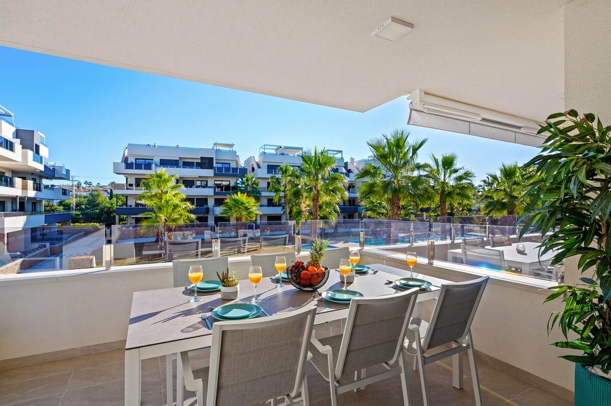 Zapraszamy do 5-gwiazdkowego, oszałamiającego kompleksu wakacyjnego w kurorcie Playa Flamenca - Orihuela Costa. Designerski styl mieszkania z tarasem sprawi, że poczujesz ekskluzywny klimat wakacyjny. W samym kompleksie mieści się kilka basenów 2 podgrzewane i 3 nie. Kilka dla dzieci, Jacuzzi, sauna, siłownia z przepięknym sztucznym wodospadem i bar w basenie. Dla wielbicieli zakupów blisko największe centrum handlowe w okolicy – La Zenia, kręgielnie, sale gier, plac zabaw oraz restauracje.