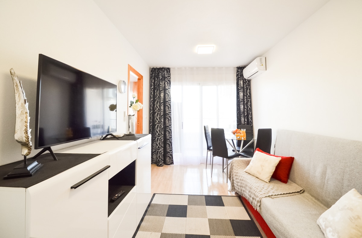 Din familj kommer att ha nära till allt när ni bor i detta centralt belägna boende t.e. super market, central busstationen, butiker och restauranger. Den lägenheten också passar till en sällskap av max 4 personer. Den lägenhet ligger in mysig område av Torrevjeja nära promenad och stranden Playa del Cura och Los Locos.