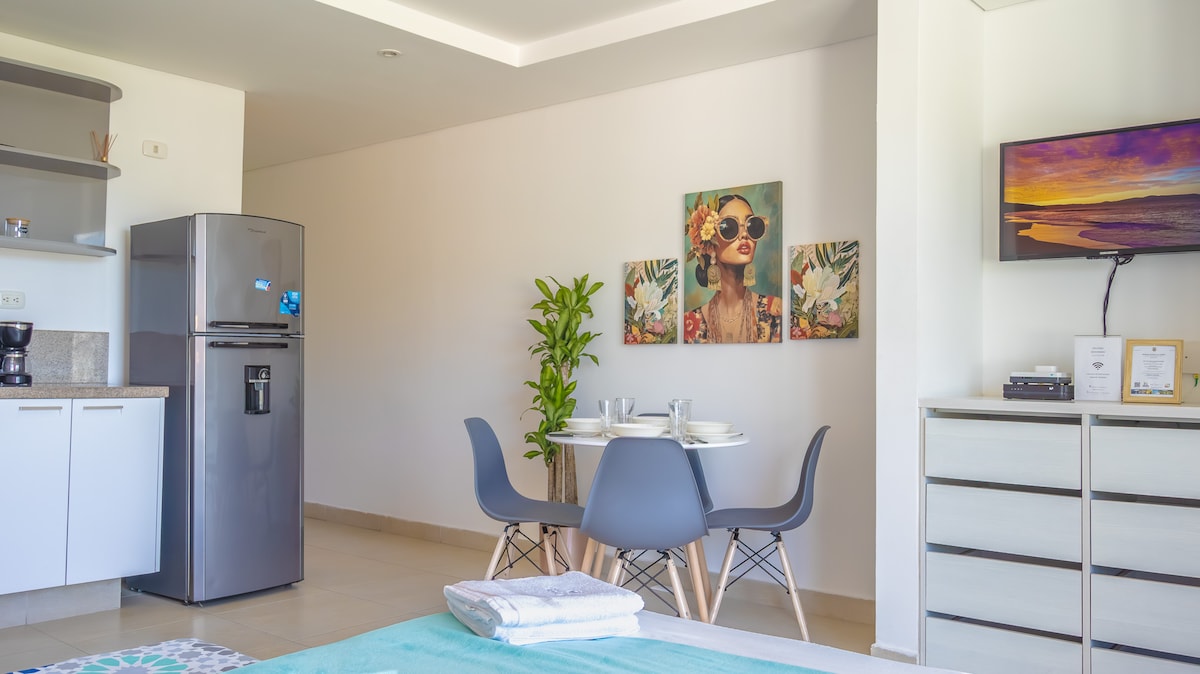 Discover a modern loft in a quiet residential area of El Rodadero! π π Enjoy breathtaking sea views and unforgettable sunsets from your private balcony. Perfect for relaxing, home-office, or exploring the region. Located near the beaches of El Rodadero and Playa Gaira, restaurants, and supermarkets, and just 20 minutes from the airport. With swimming pools, coworking spaces, a gym, and more, this loft offers the perfect balance of comfort and accessibility for an unforgettable stay.
