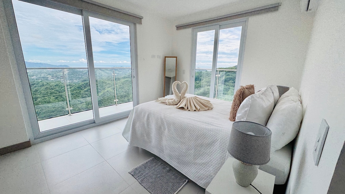 Casa Esmeralda Caletas is a modern condo ideal for group and couples. It offers stunning views of the mountains and the Pacific Ocean, an spacious balcony for enjoying the sunset with a glass of wine, a fully equipped kitchen, gym, co-working space, infinity pool and 2 jacuzzis with views of the Gulf of Nicoya. Just 5 min. from supermarkets, pharmacies, restaurants, and the Marina Los Sueños with its 18 holes golf course, and 10 min. from the vibrant town of Jacó.